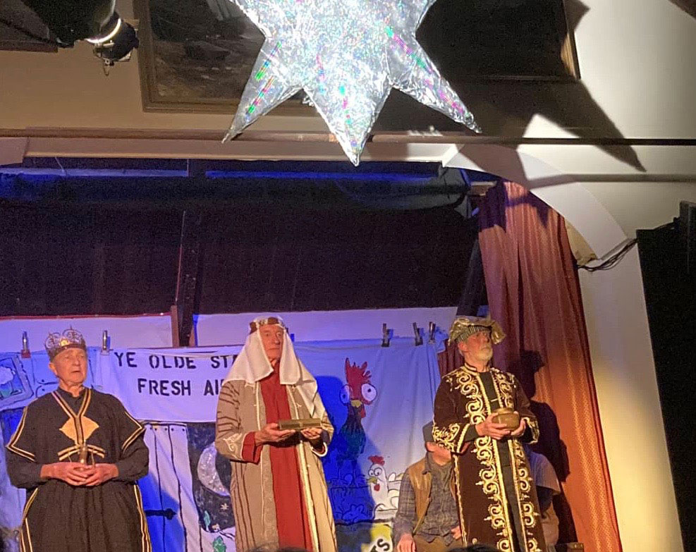 Landlady Nicky Jose. Joseph Frank George, Mary Jan Halliday, Gabriel Jean Trimble, Caspar Paul Collins, Melchior/Tom Tinker Brian Jenkins, Camel Driver Janet Gascoigne, King Herod Simon Bradley, Herod’s Glamorous Assistant Jill Thomas, Angels Hazel Strickland, Isla Bosustow, Genevieve Bosustow, Summer-Rose Pollard, Villagers Richard Curnow, Mark Outten, Anthony Richards, Paul Collins, Frank George,