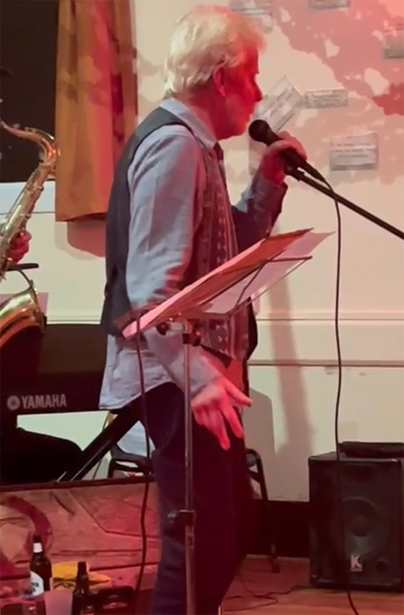 Robin Bates on keyboard was as versatile as ever, accompanying and adding interest to virtually every number. Jonathan Fletcher on sax and vocals put the swing into the evening. He gave a rousing rendition of Green Door which had everyone’s toes tapping (I hear one or two people were tempted to get up and dance a jive at that point). Brian Jenkins on harmonica and vocals showed his talent in very varied styles. With the lights turned down low, he struck a romantic tone with his rendition of La Mer in French which had everyone swaying along. Jonathon Coudrille’s exceptional musicality was on show as he played the trumpet, mandolin and guitar, as well as taking a turn with Robin on the keyboard. Dave Painter on drums kept an unobtrusive but constant rhythm going, while Lee Clarke on bass guitar added depth to the sound. Ian Dunlop made a short appearance, opening with an amusing monologue on the world of social media. He followed with a few songs, including Up the Lazy River and a Fats Waller number. Sarah Parnell was on fine form, giving a sultry nightclub feel to things and duetting with Brian on My Baby Just Cares for Me. She was especially applauded for her wonderful rendition of Summertime.