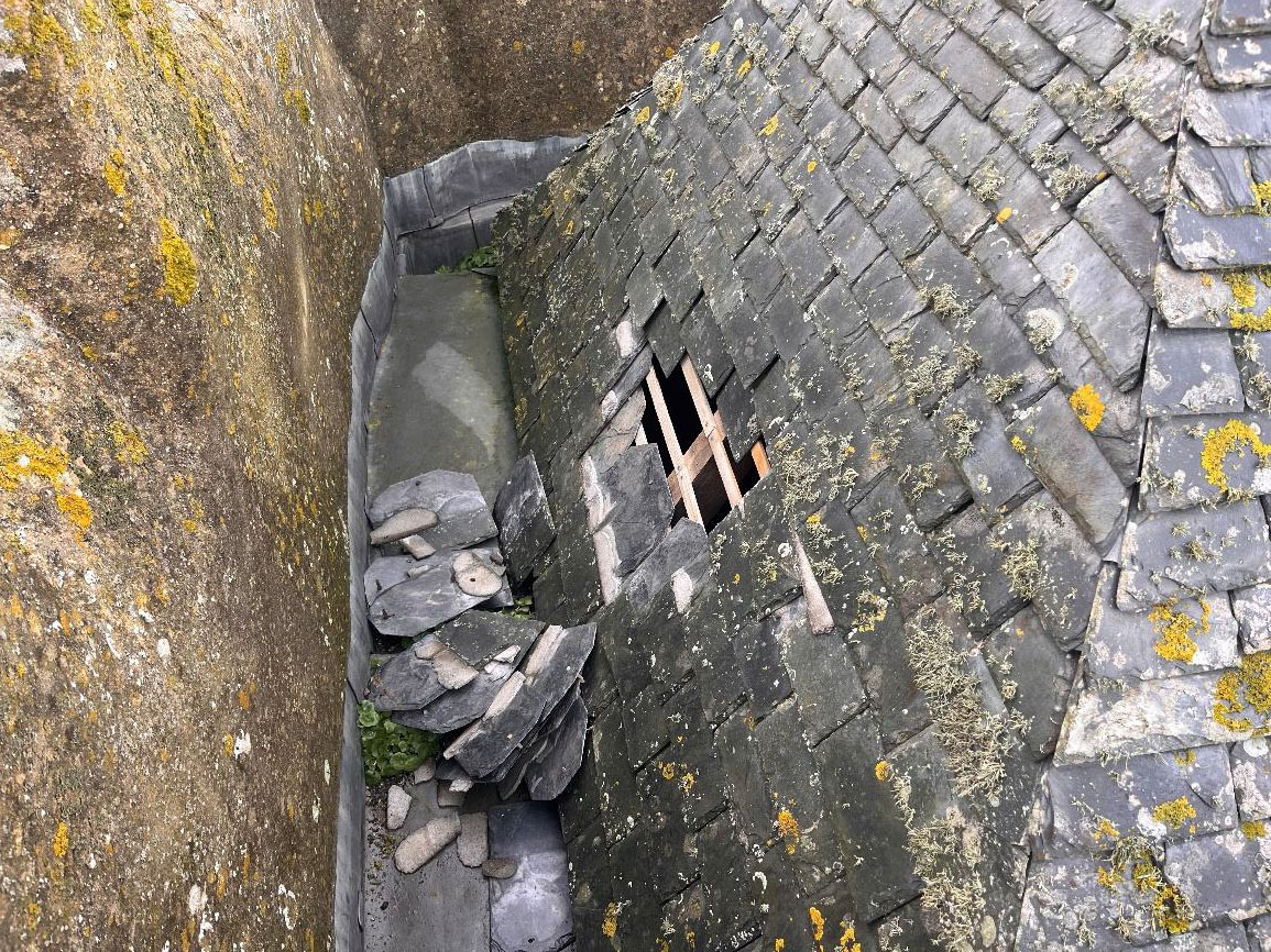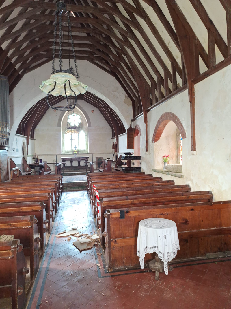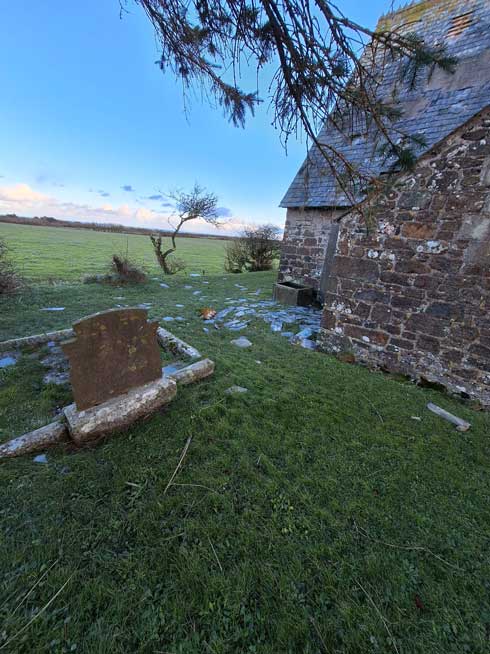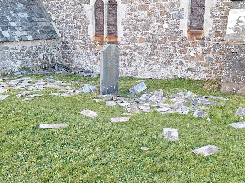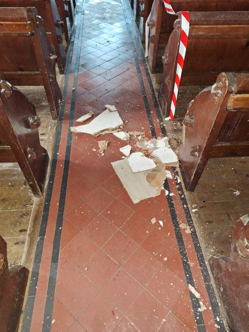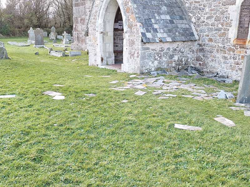 Storm Éowyn and storm Herminia have caused yet more damage to St Grade Church, more slates have been blown off causing more of the ceiling to fall into the aisle and pews.