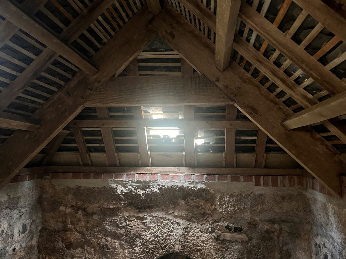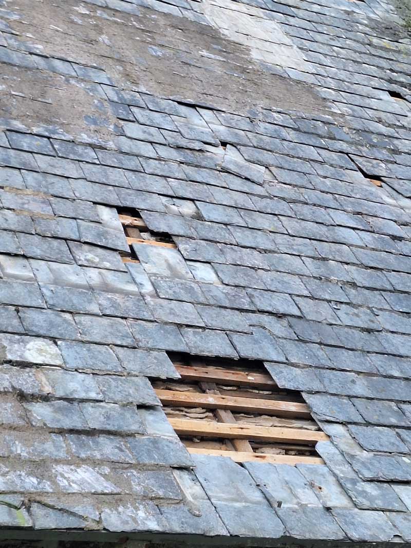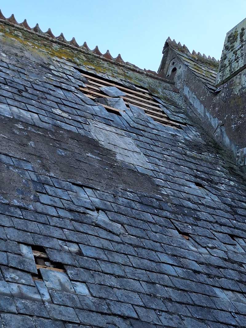 The roof slates will be replaced. New gutters and drainpipes will be added. All of this will make the building watertight again.
