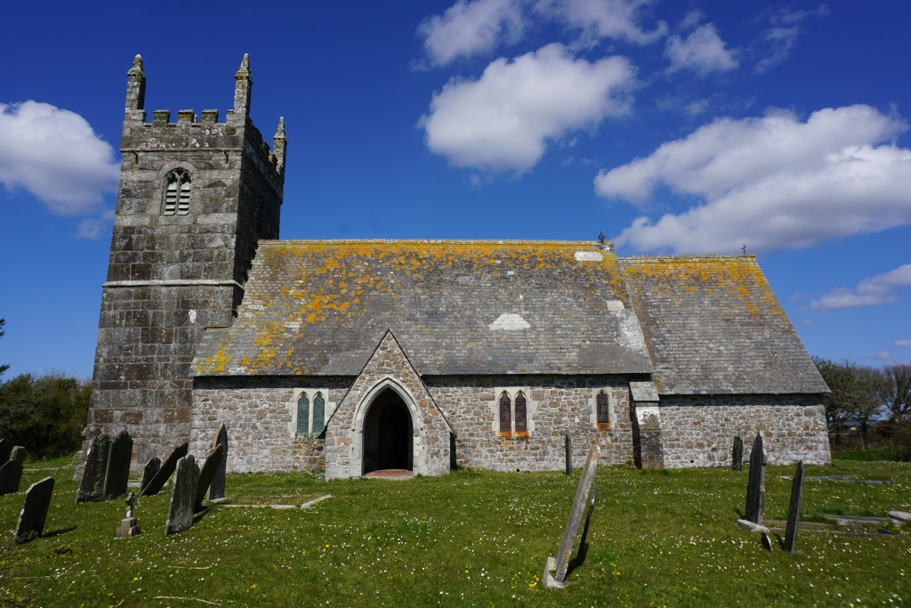 In the legend of Wallysborough’s return to Cornwall most sources record that he was sailing towards the Cornish coast when his ship was struck by a vicious storm. The knight prayed to the Almighty, promising that if he made it to shore alive he would give a fragment of the precious relic he carried to “the church of the parish in which he might come safely to land”. Wallysborough’s ship was wrecked but he miraculously survived and came ashore in Grade parish, where he either had a church built or, true to his word, gave a fragment of the True Cross to the priest there. (There is some suggestion that another fragment was given to St Buryan church too . . .)